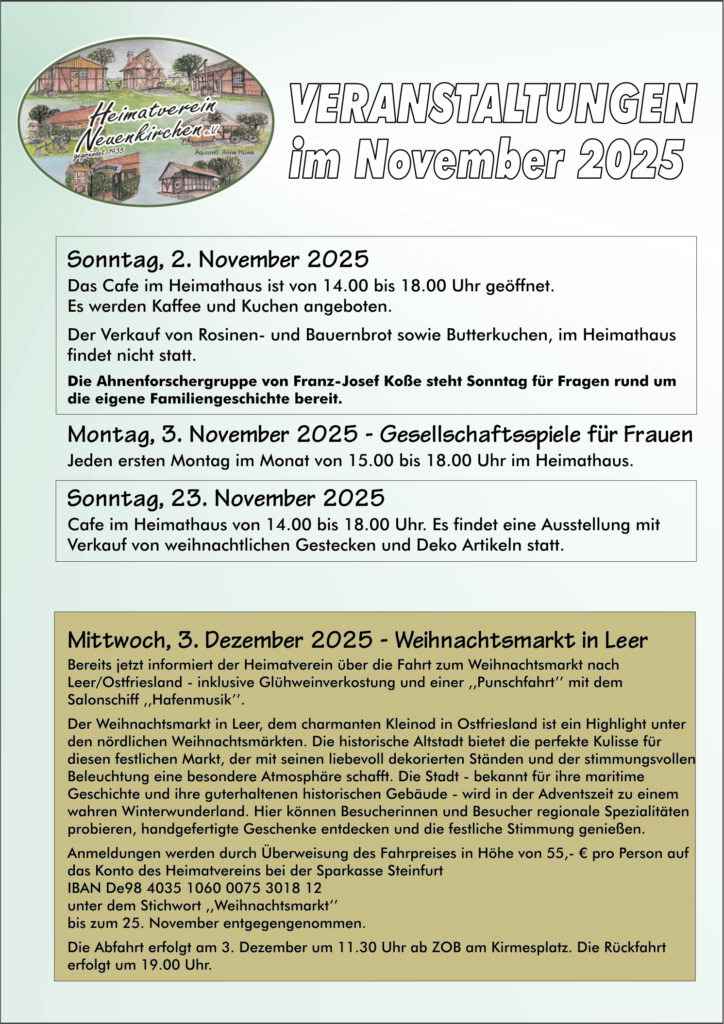 Aber auch Pättkesfahrten, Busausflüge und Winterwanderungen bieten wir nicht nur unseren Mitgliedern, sondern allen an die hieran Interesse haben.