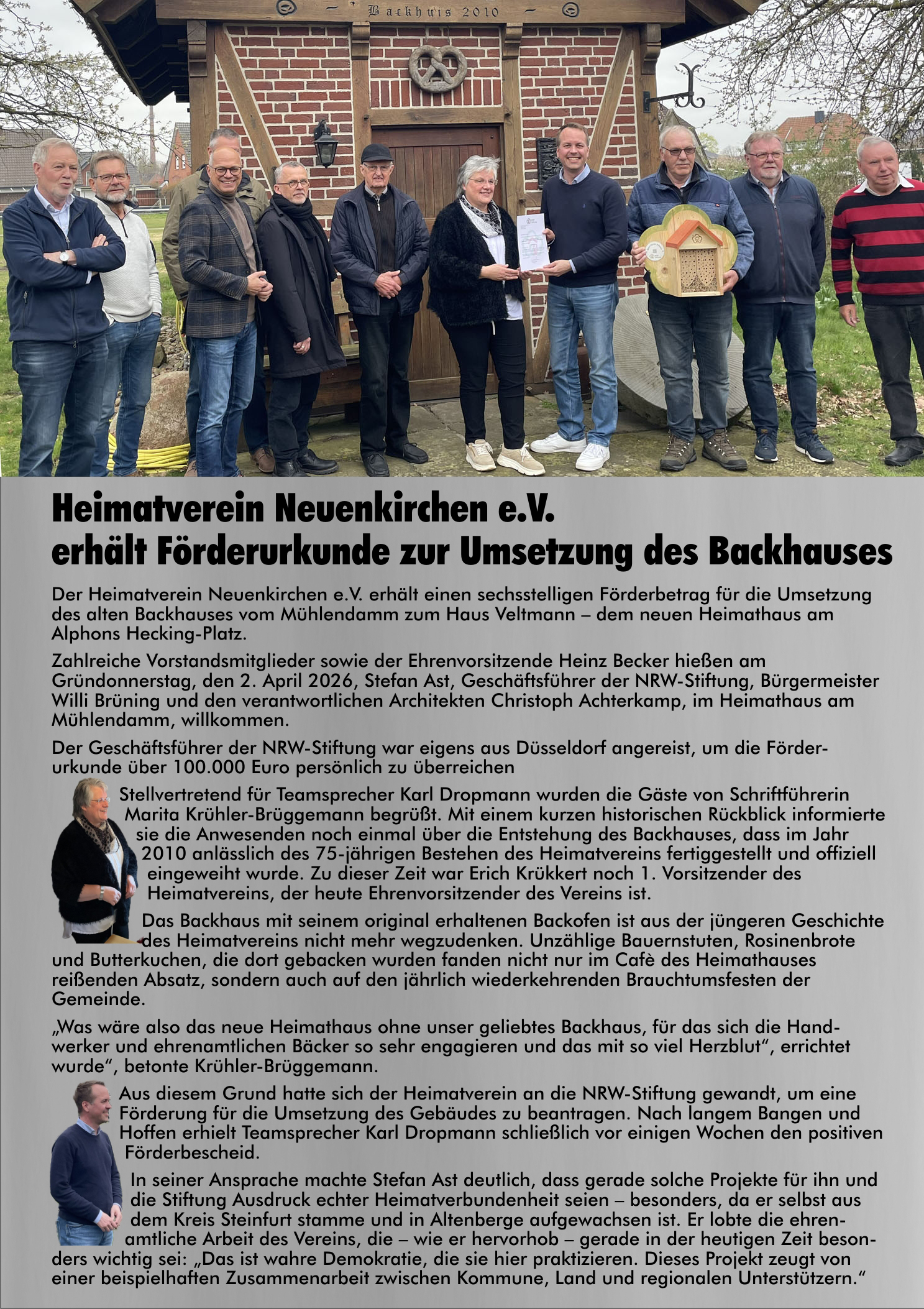 • Laudatio für unseren Heimatverein e.V. aus Anlass der Ehrung mit dem Heimatpreis der Gemeinde Neuenkirchen